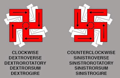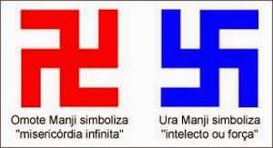 Vemos então a suástica nos dois sentidos explicada pelo Budismo Manji.