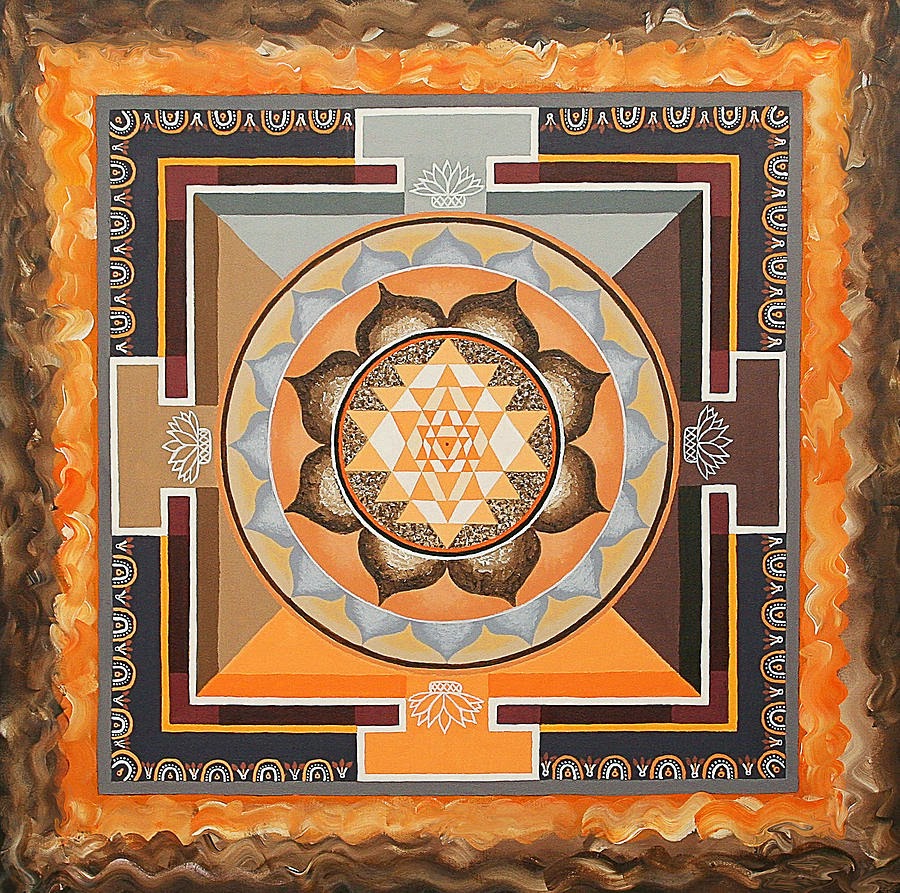 O que sugere a união dos opostos, a harmonia entre os opostos ou a dualidade gerando a unicidade do Yantra, que está em chacras acima do coronário e há pessoas que supõem que o Yantra (a representação visual dos mantras – a mandala) seria a representação oriental da Merkaba.