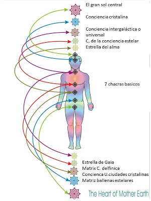 Quando a união se fortalece, não somente encontramos informação dos chakras em outros chakras que se complementam, mas sim, que se estende ao chakra Estrela de Gaia e ao Estrela da Alma e então, o ser vivo (atenção por eu não dizer homem, mas sim, ser vivo) entrelaça sua informação com o fluxo do Universo e da Terra, subindo de oitava, ou seja, vibrando mais e alcançando mais informação.