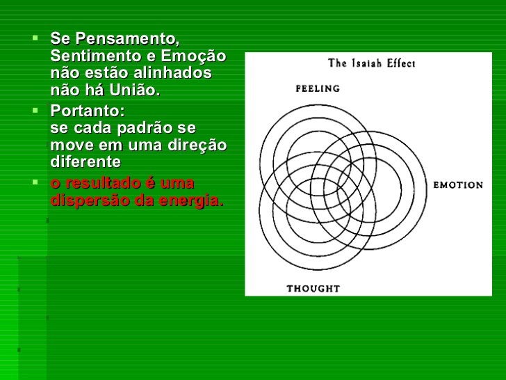Quase imediatamente uma resposta surgirá em sua mente. Pode ser alguma coisa tão simples como um sentimento de realização ou algo tão claro como a voz interior que você reconhece e que tem estado desde criança em sua companhia. As respostas frequentemente são palavras simples ou frases curtas, e seu corpo saberá o que tem sentido para você. Talvez você simplesmente perceba algo de belo nessa pessoa de que você sente falta em si mesmo naquele momento.Trata-se de você encontrando uma parte sua em outra pessoa, algo que você tem, bem como o sentimento do que seria despertar alguma coisa assim no seu íntimo. Para os que têm a coragem de reconhecer o sentimento de familiaridade de tais encontros, o medo da perda,provávelmente,desaparece. Encontramos uma sensação de plenitude em nós mesmos quando os outros espelham em nós a verdadeira natureza deles. Coletivamente, estamos olhando para nossa plenitude, e criamos individualmente as situações que nos levam a encontrá-la; professores, pessoas mais velhas, jovens, pais e filhos ,o sexo oposto, todos são catalisadores de sentimentos.Nesses sentimentos encontramos as coisas que ansiamos ter em nós mesmos, o que ainda existe em nós, mas está oculto pelas máscaras do que acreditamos que somos. É natural e humano. A compreensão do que nossos sentimentos realmente nos contam a respeito dos outros, pode se transformar no mais poderoso instrumento para descobrirmos nosso potencial máximo.